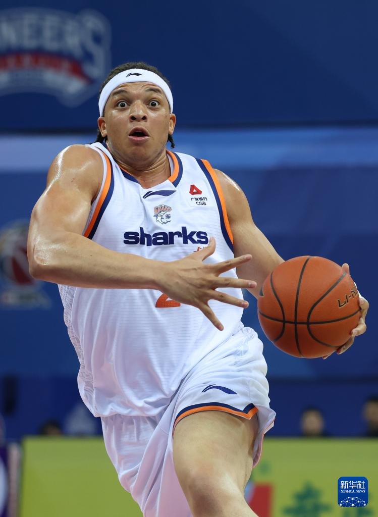 3月27日,上海久事队球员肯尼思·洛夫顿在比赛中进攻。