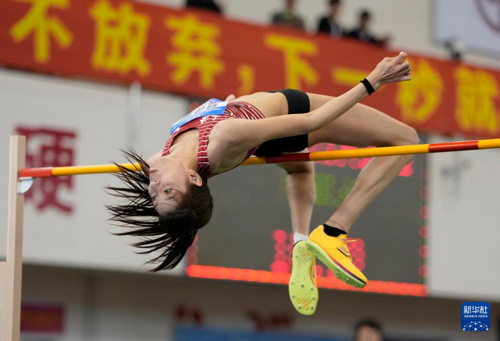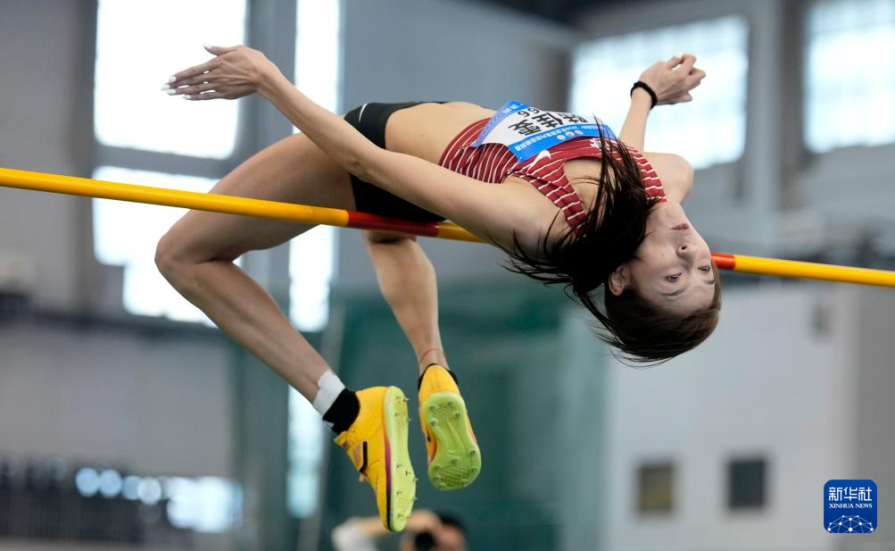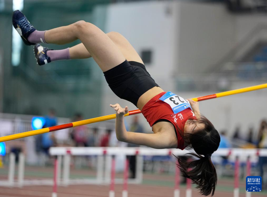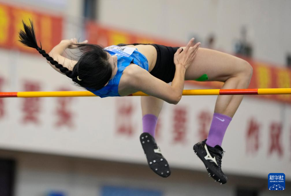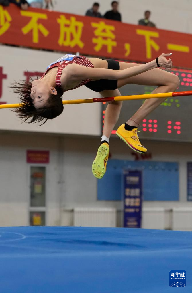 3月28日,北京队选手金若宣在女子跳高决赛中试跳。她获得亚军。