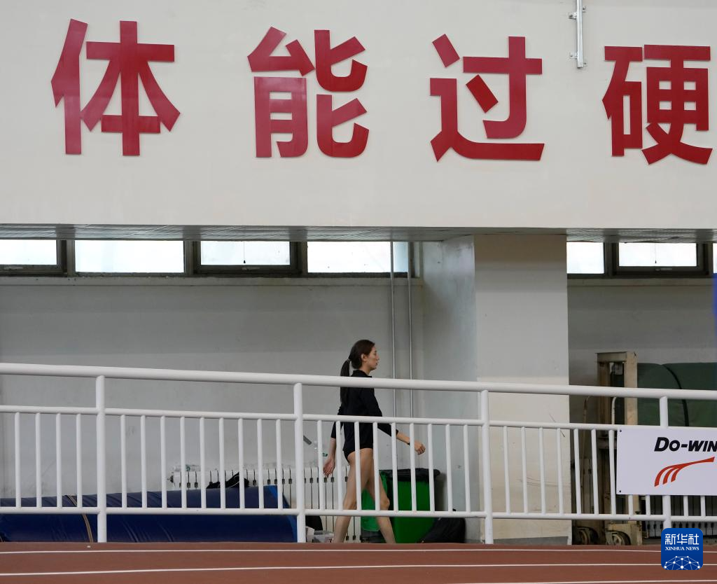 3月28日,上海队选手陆佳雯在女子跳高决赛间隙。她获得冠军。