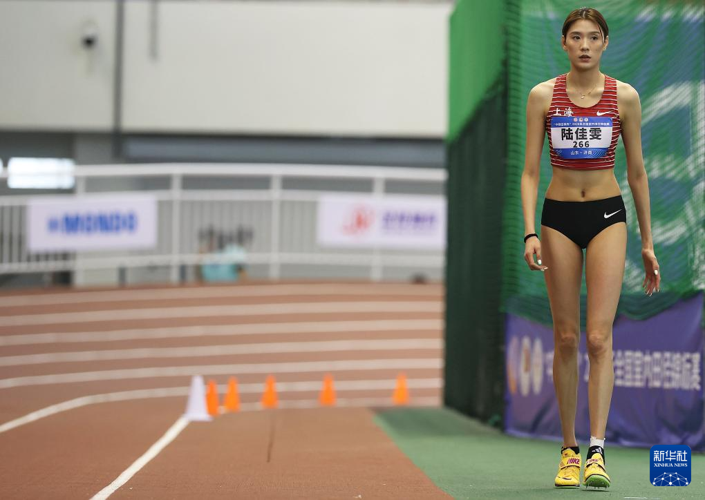 3月28日,上海队选手陆佳雯在女子跳高决赛中试跳。她获得冠军。