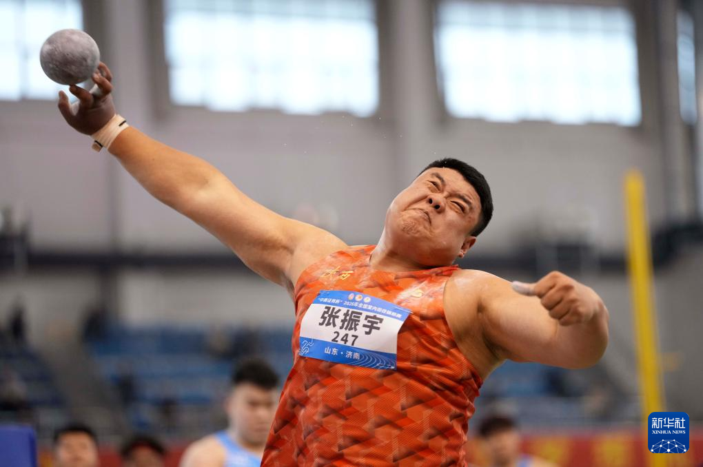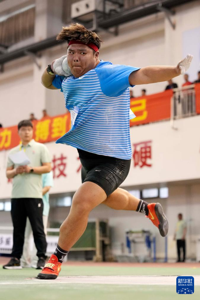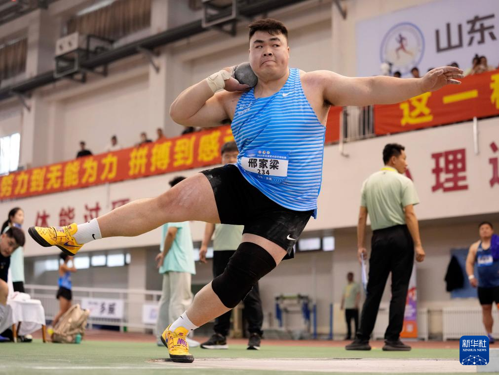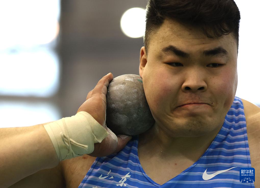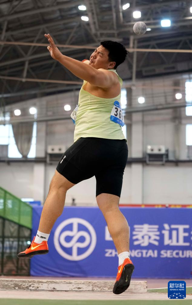 3月27日,山东中泰证券队选手邢家梁在男子铅球决赛中。他获得冠军。