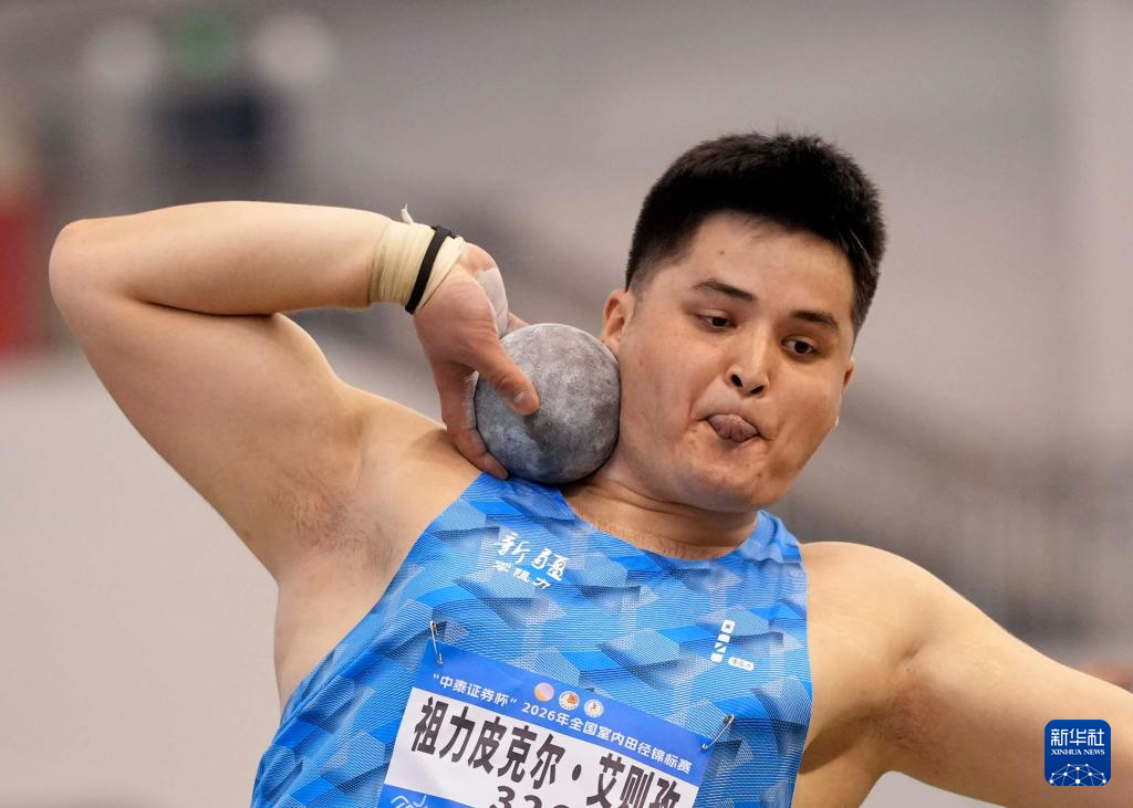 3月27日,新疆队选手祖力皮克尔·艾则孜在男子铅球决赛中。他获得第四名。