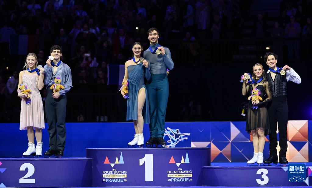 当地时间3月28日,2026世界花样滑冰锦标赛冰舞自由舞比赛在捷克首都布拉格举行。最终,法国组合富尼耶·博德里/西泽龙、加拿大组合吉勒/普瓦里耶、美国组合津加斯/科列斯尼克分获冰舞项目冠、亚、季军。