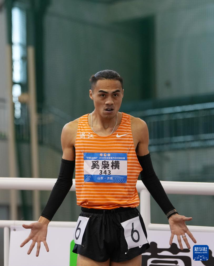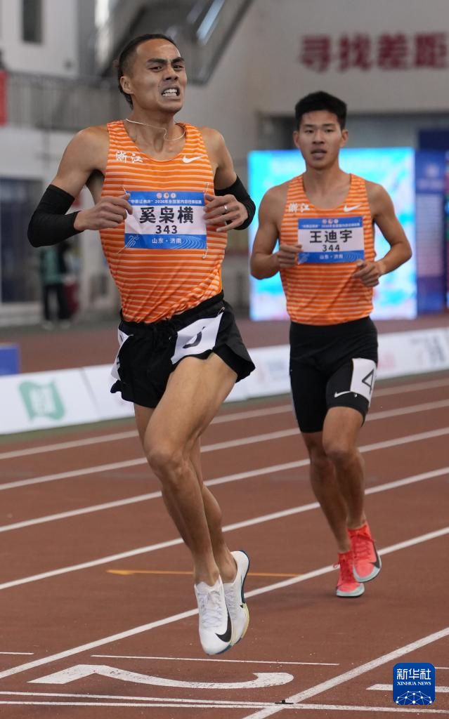 3月28日,浙江体彩队选手奚枭横在男子1500米决赛中。他获得冠军。