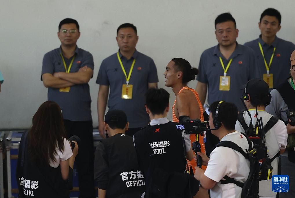3月28日,浙江体彩队选手奚枭横(右)在比赛前。他夺得冠军。