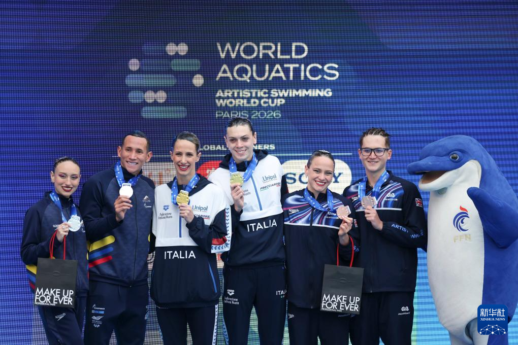 当地时间3月29日,2026年世界泳联花样游泳世界杯巴黎站混合双人自由自选决赛在法国巴黎举行。