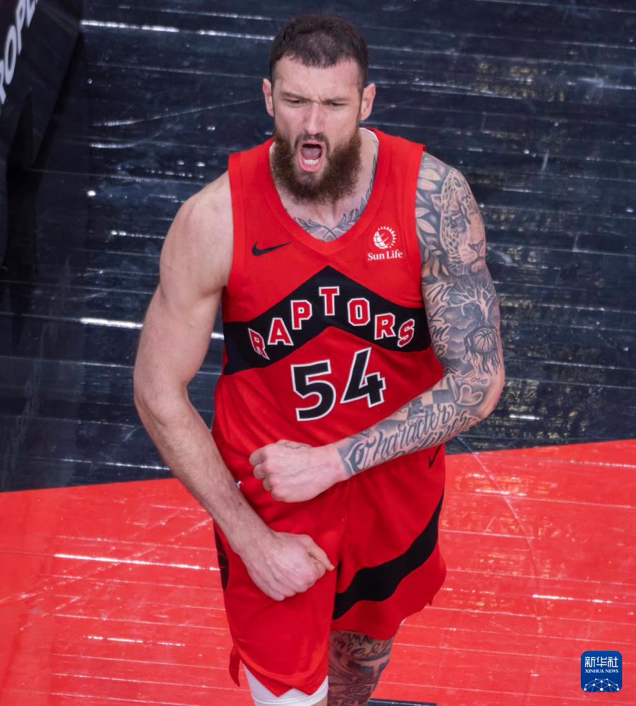 3月29日,猛龙队球员马穆凯拉什维利在比赛中庆祝得分。