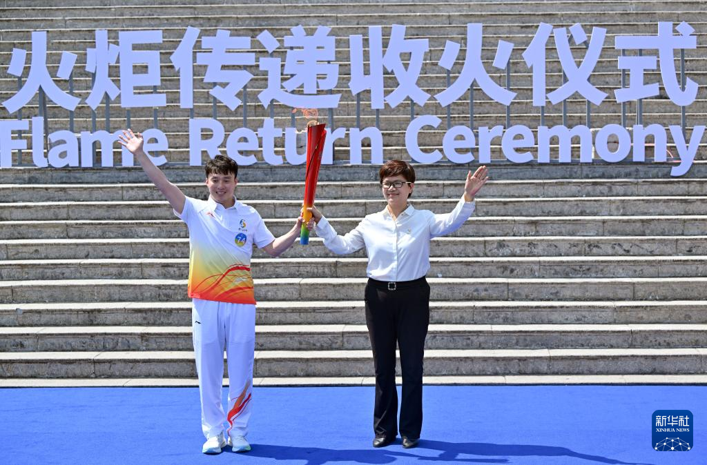 3月30日,最后一棒火炬手齐广璞手持火炬抵达收火仪式现场。