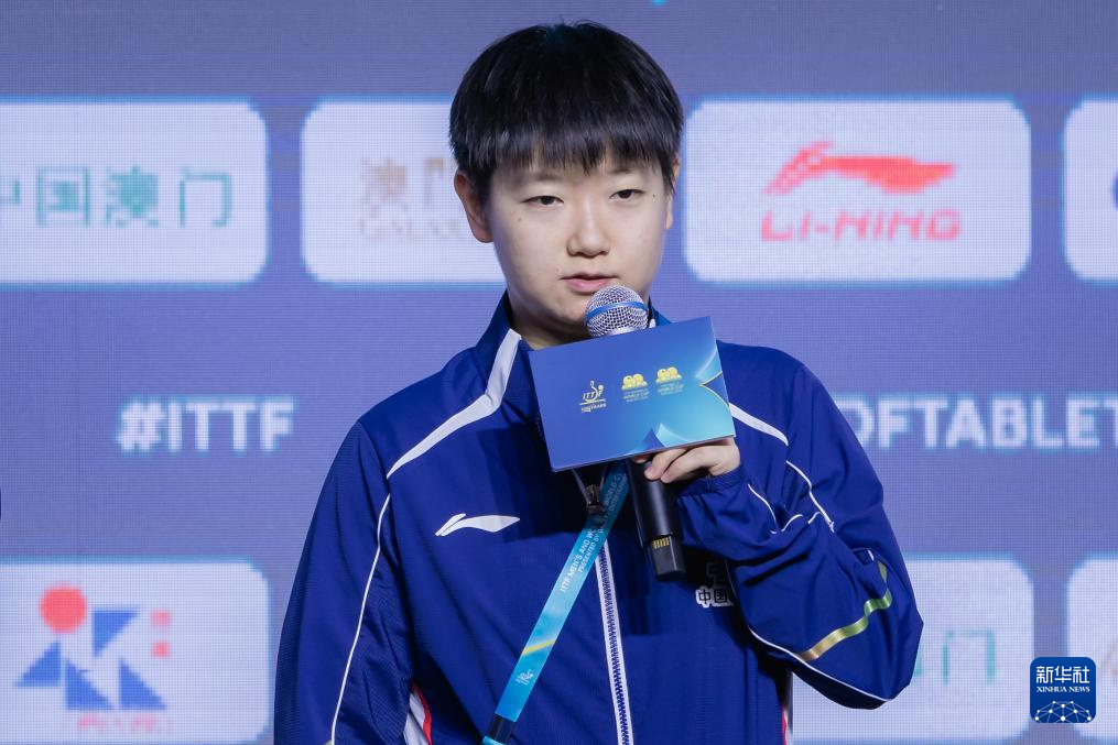 3月29日,中国选手孙颖莎在抽签仪式上。