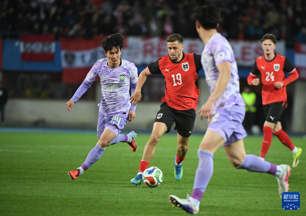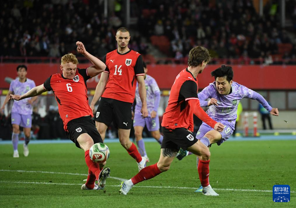 当地时间3月31日,在奥地利维也纳举行的一场足球友谊赛中,奥地利队1比0战胜韩国队。