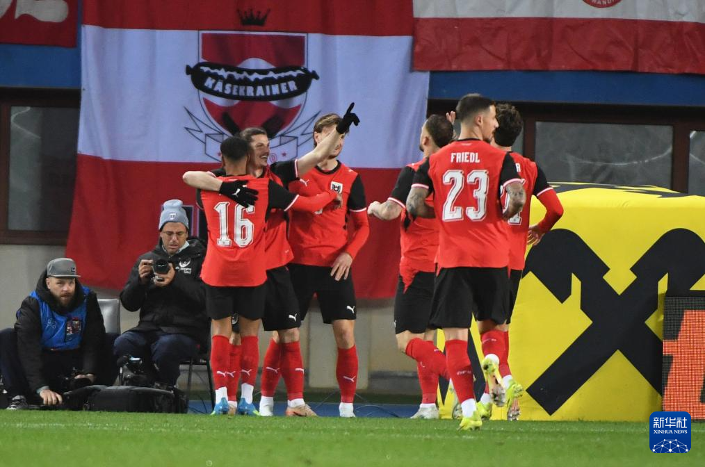 3月31日,奥地利队球员在比赛中庆祝进球。