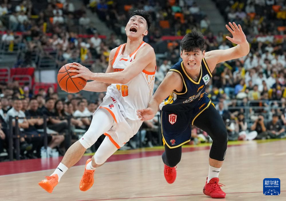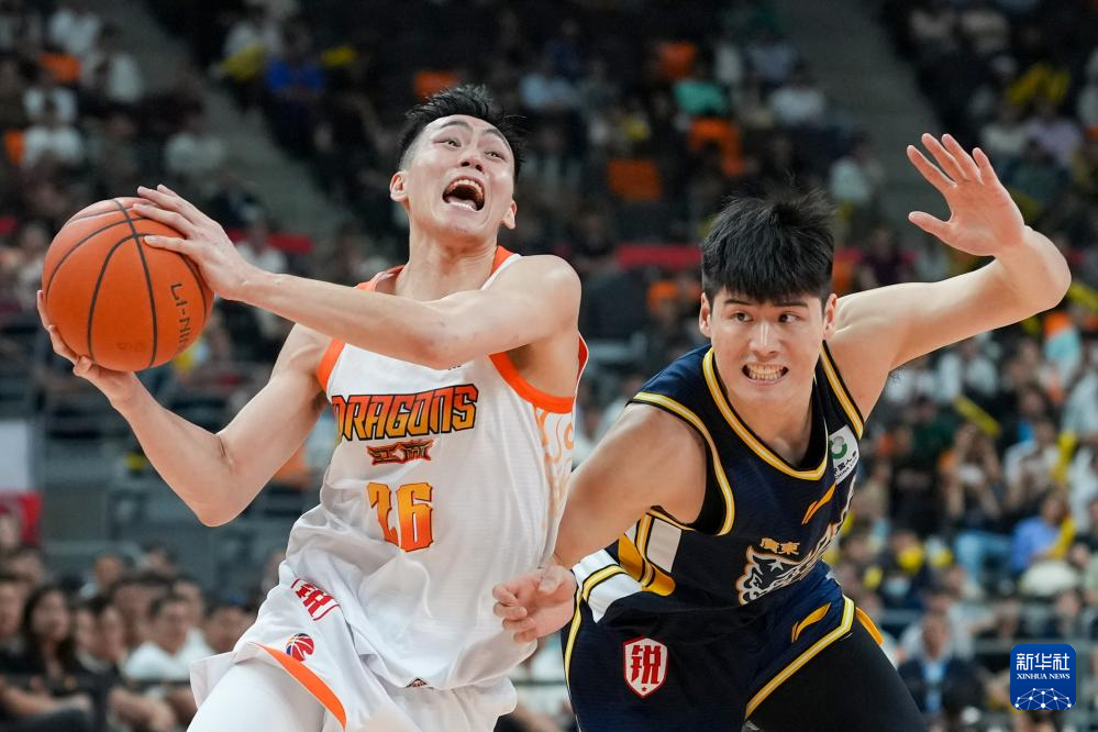 3月31日,广东东阳光队球员胡明轩(左四)在比赛中进攻。
