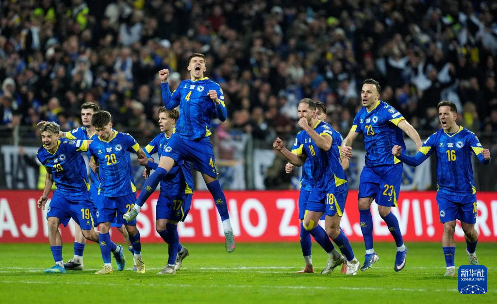 3月31日,波黑队球员在比赛后庆祝晋级世界杯正赛。