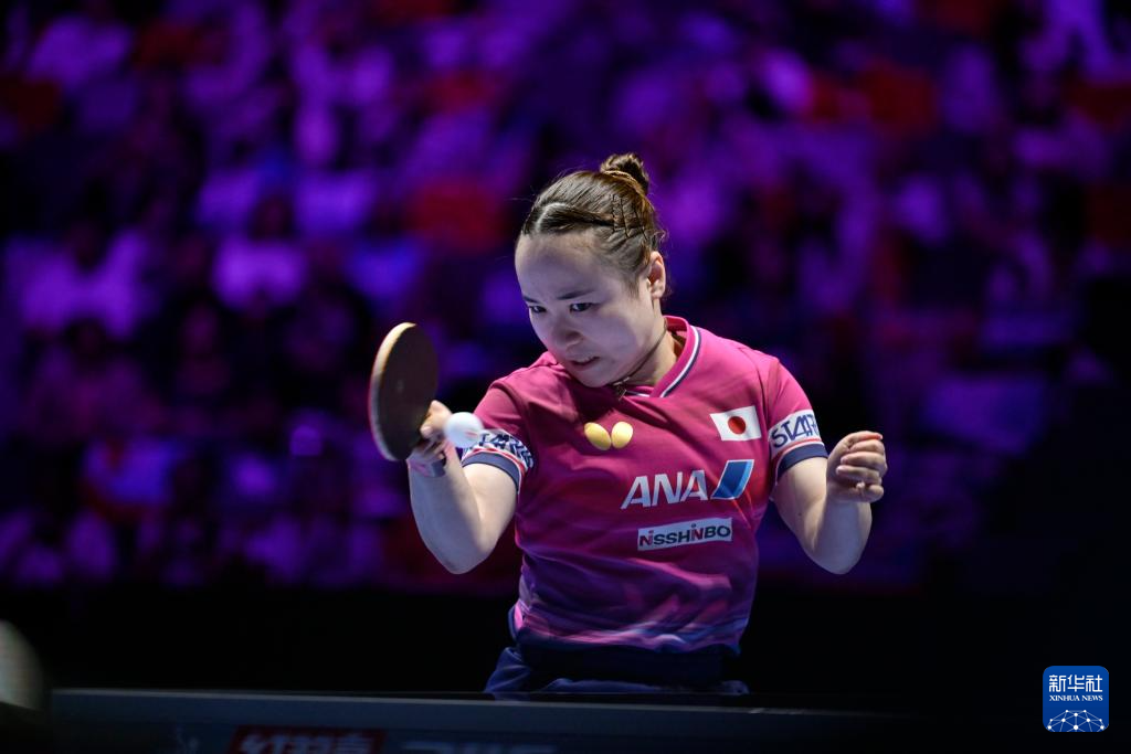 4月2日,日本选手伊藤美诚在比赛中回球。