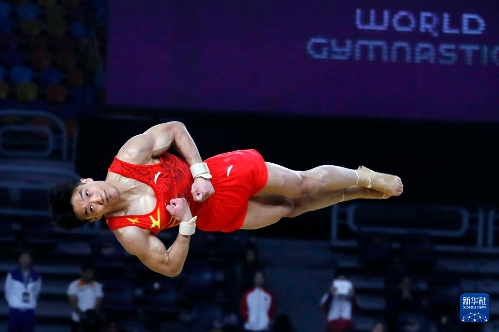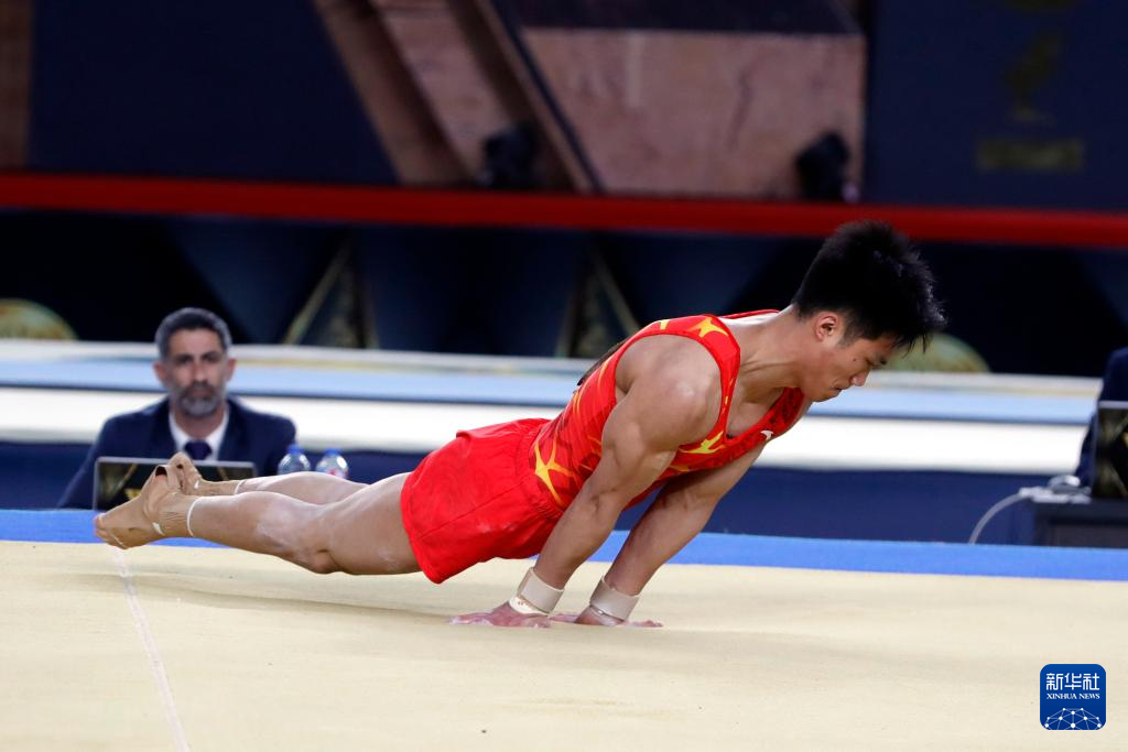 4月3日,中国选手李鸿颜在男子自由操项目资格赛中。他位列第七名,晋级决赛。