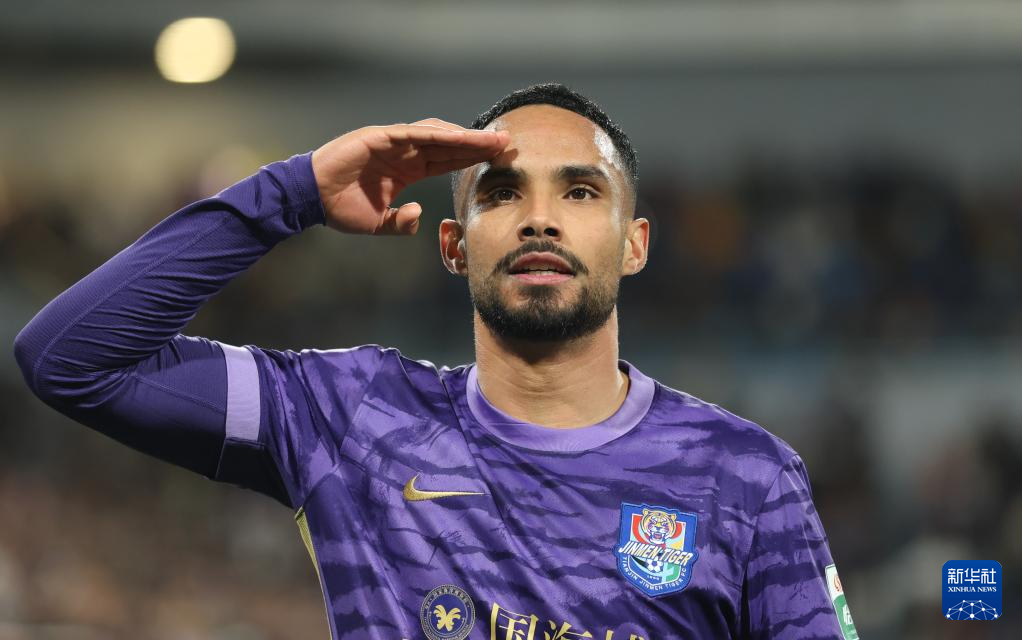 4月5日,天津津门虎队球员谢蒂内在进球后庆祝。