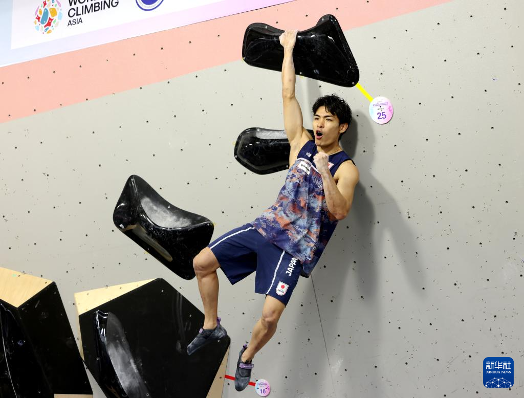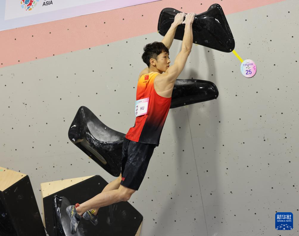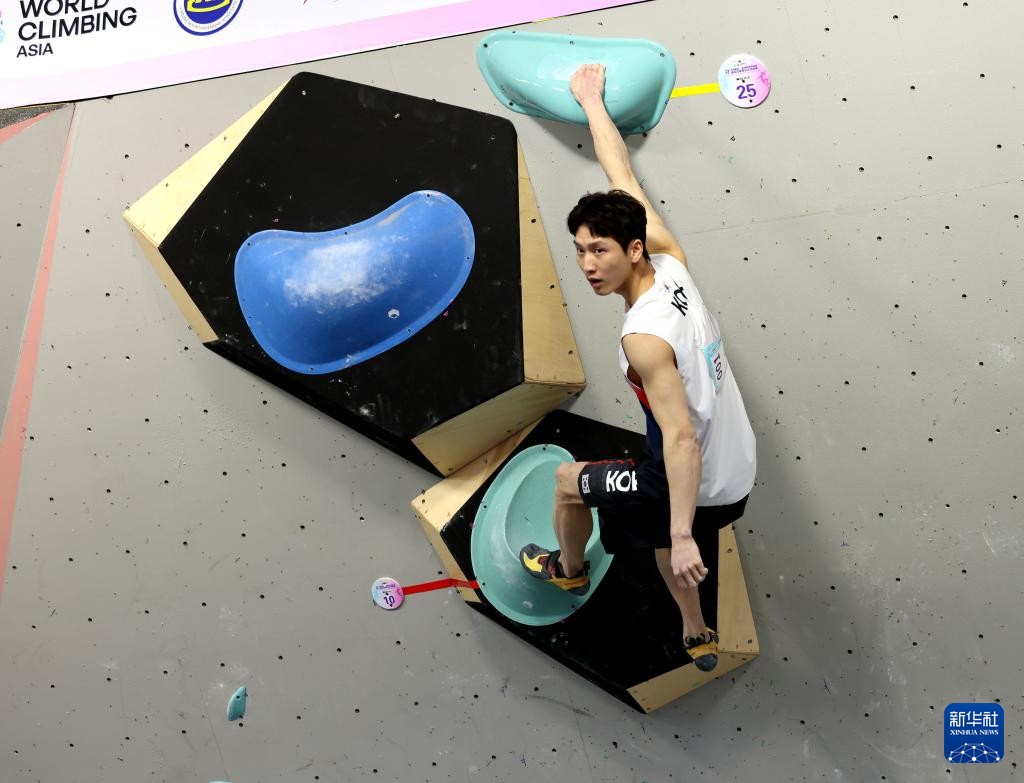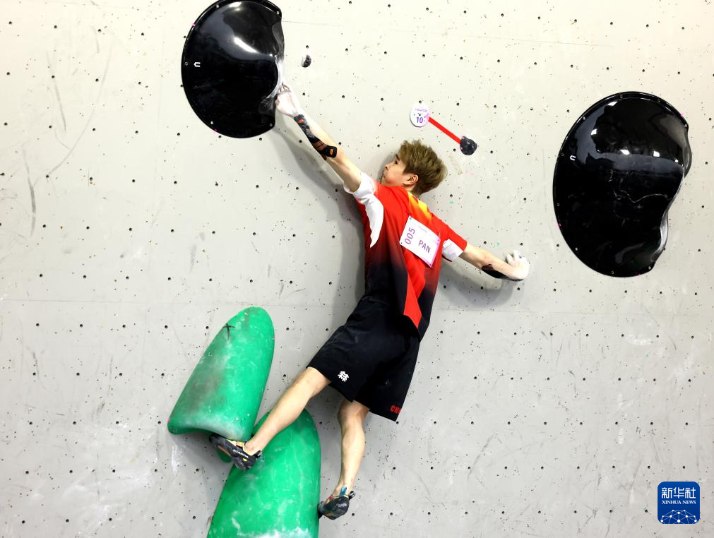 4月10日,2026年中国眉山·亚洲攀岩锦标赛暨名古屋亚运会资格赛男子攀石决赛在四川省眉山市举行。