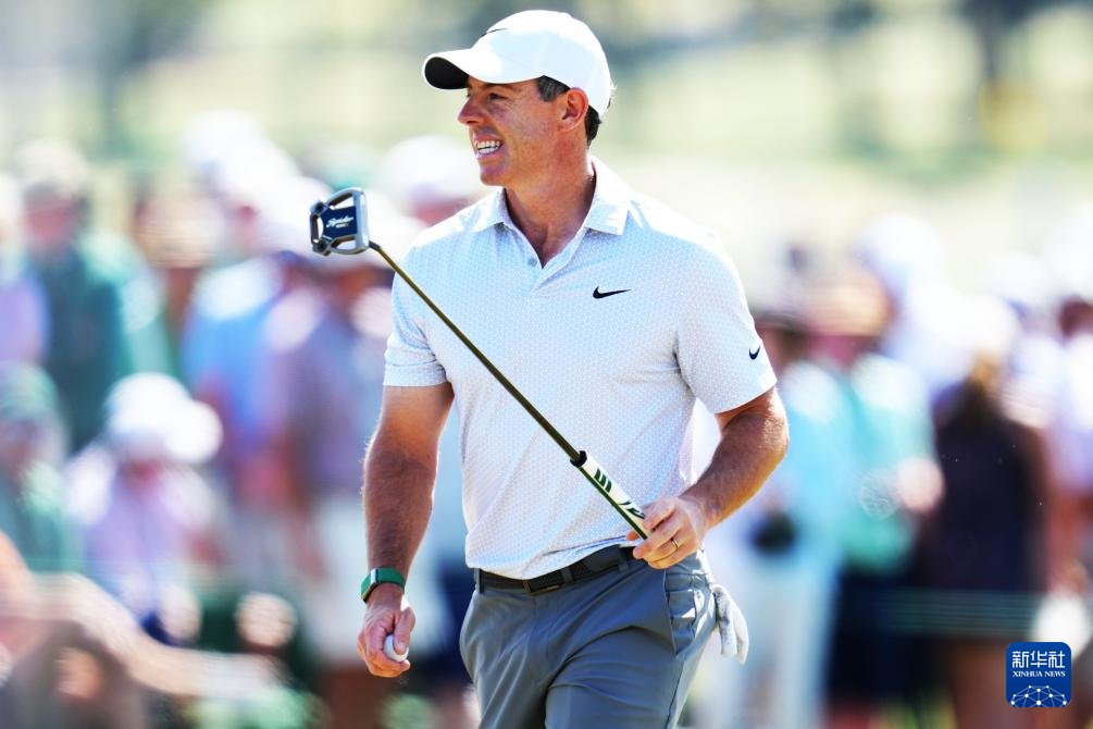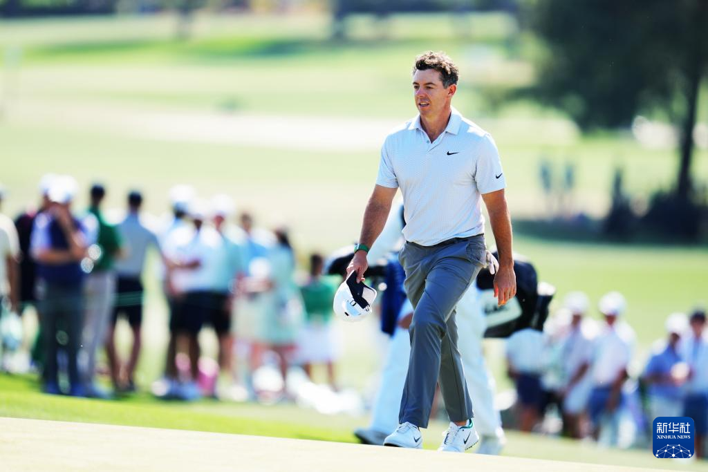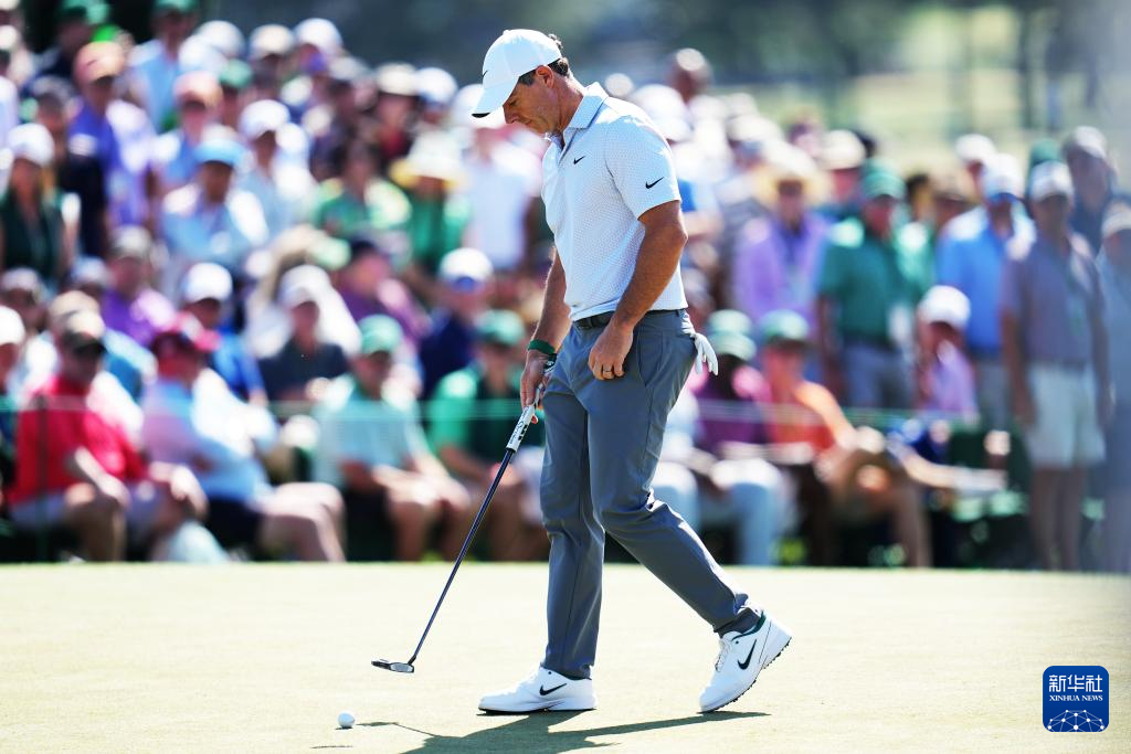 4月10日,北爱尔兰选手麦克罗伊在比赛中。他以两轮132杆的总成绩暂列第一名。