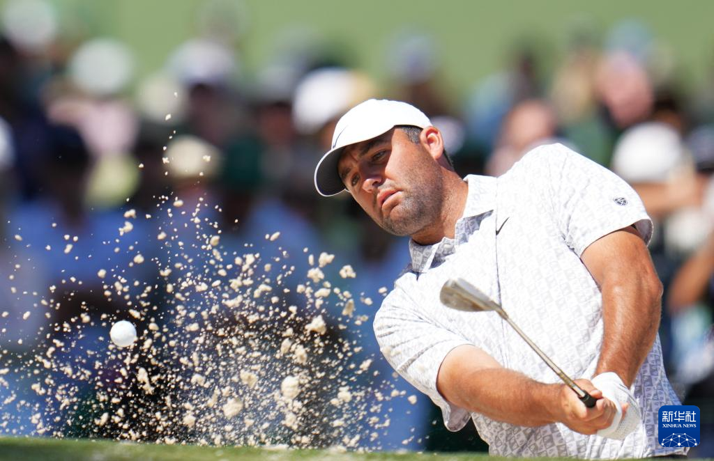 4月10日,美国选手斯科蒂·舍夫勒在比赛中。他以两轮144杆的总成绩暂列并列第16名。