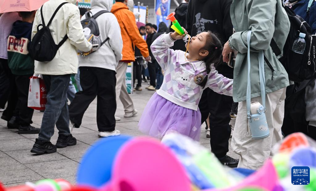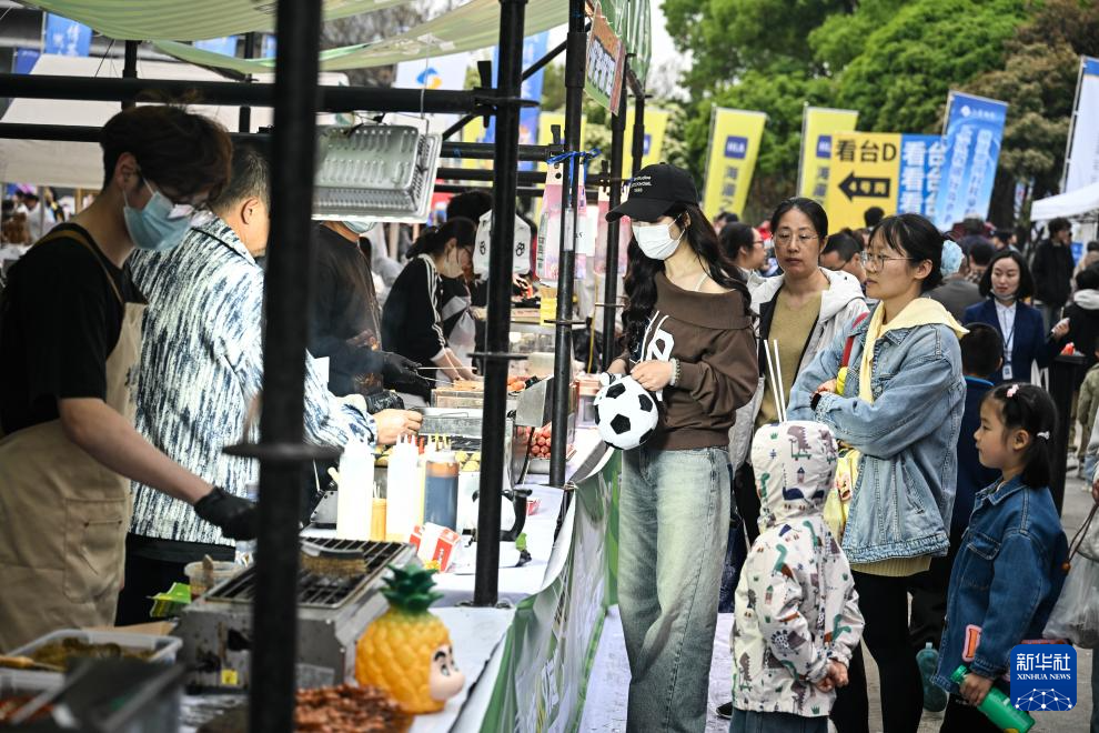 4月11日,观众在常州奥体中心的“苏超”市集上休闲消费。