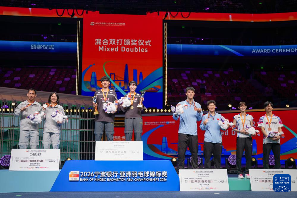 4月12日,2026年亚洲羽毛球锦标赛混合双打颁奖仪式在浙江宁波举行。