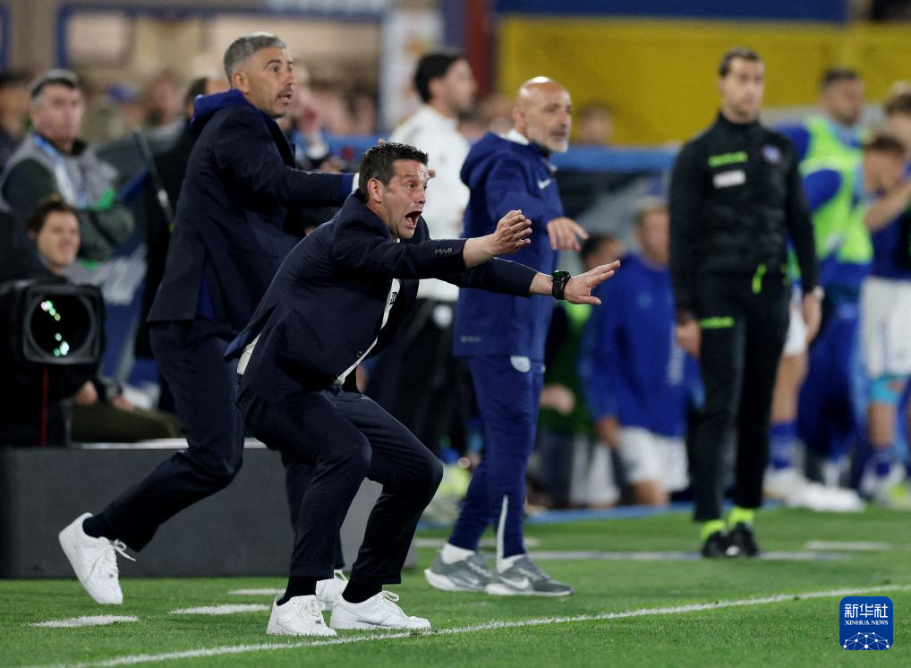 4月12日,国际米兰队主教练齐沃(前)在场边指挥。