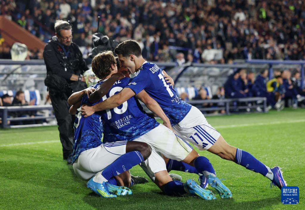 4月12日,科莫队球员尼科·帕斯(前中)在进球后与队友庆祝。
