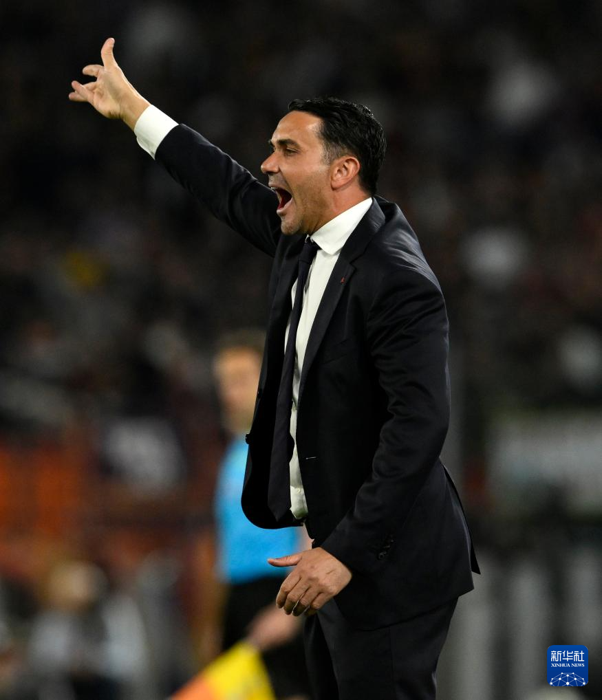 4月18日,罗马队主教练加斯佩里尼在场边指挥。