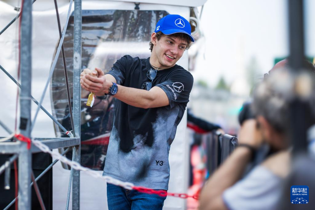 4月19日,F1梅赛德斯车队意大利车手安东内利在现场观战。