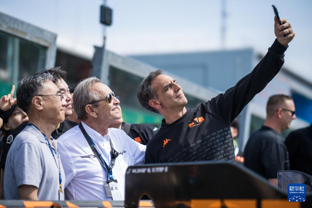 4月19日,捷尼赛思车队领队阿比特布勒(右)与比利时传奇车手伊克斯(中)自拍。