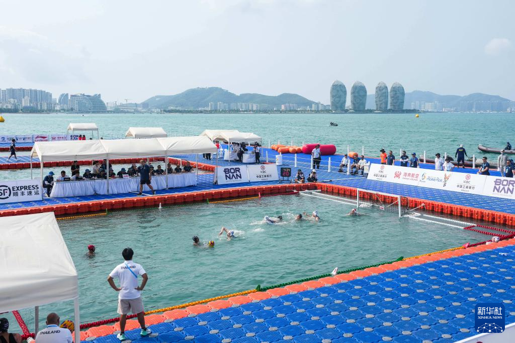 4月22日,在海南三亚举行的第六届亚洲沙滩运动会女子水球单循环决赛中, 哈萨克斯坦队3比2战胜泰国队。