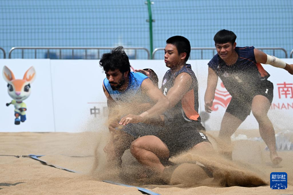 4月23日,在海南三亚举行的第六届亚洲沙滩运动会沙滩卡巴迪男子小组赛中,印度队66比23战胜中国台北队。
