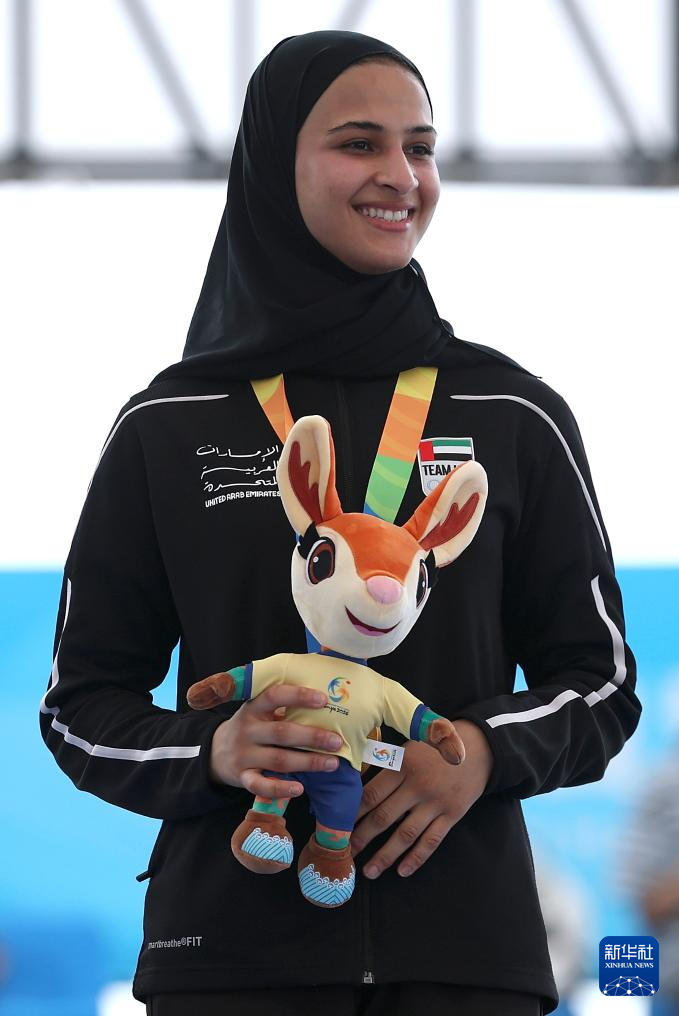 4月23日,女子52公斤级冠军阿联酋选手阿斯玛·胡萨尼在颁奖仪式上。