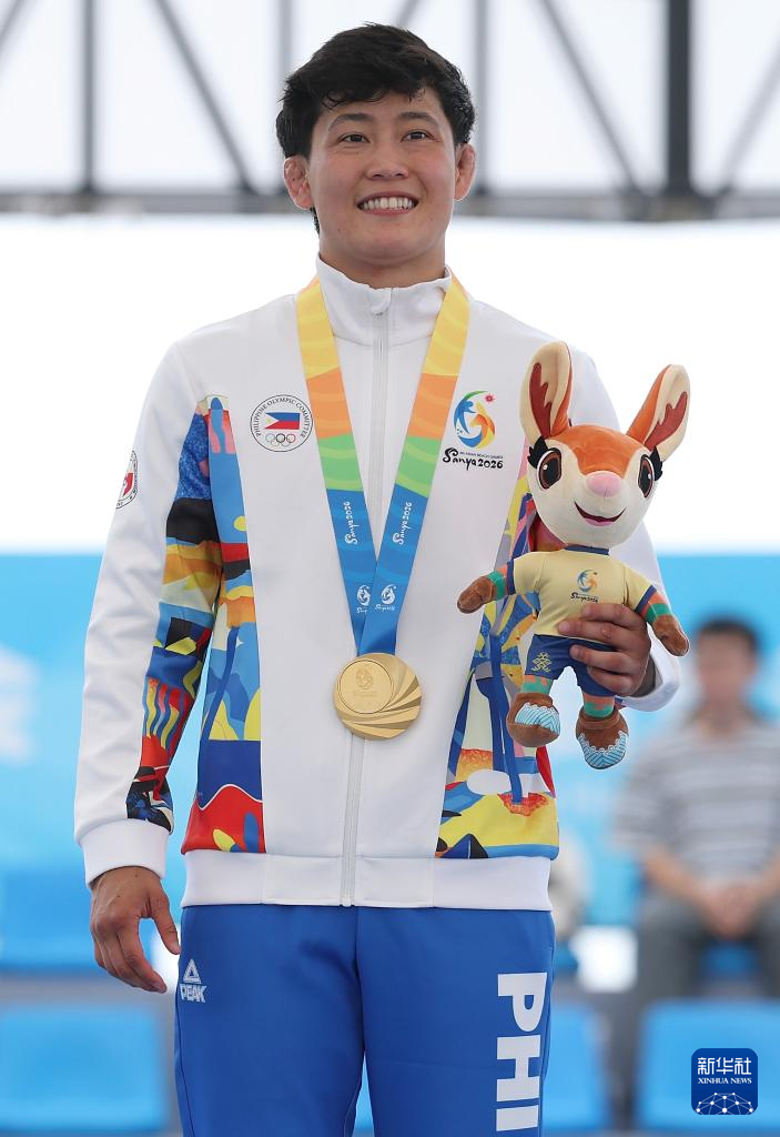 4月23日,女子63公斤级冠军菲律宾选手亚历山德里亚·卢斯·恩里克斯在颁奖仪式上。