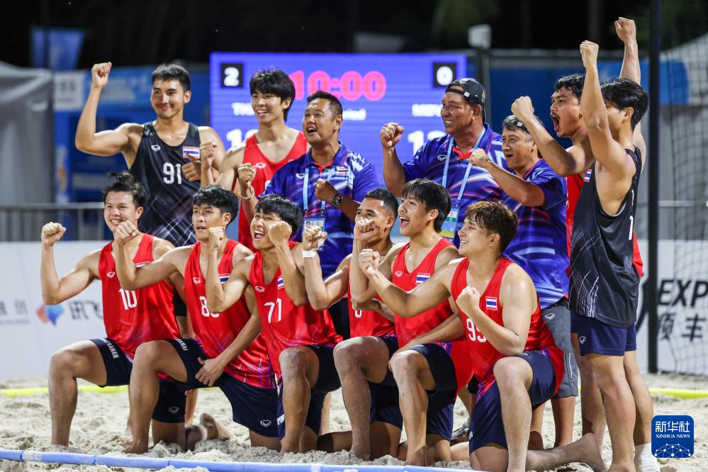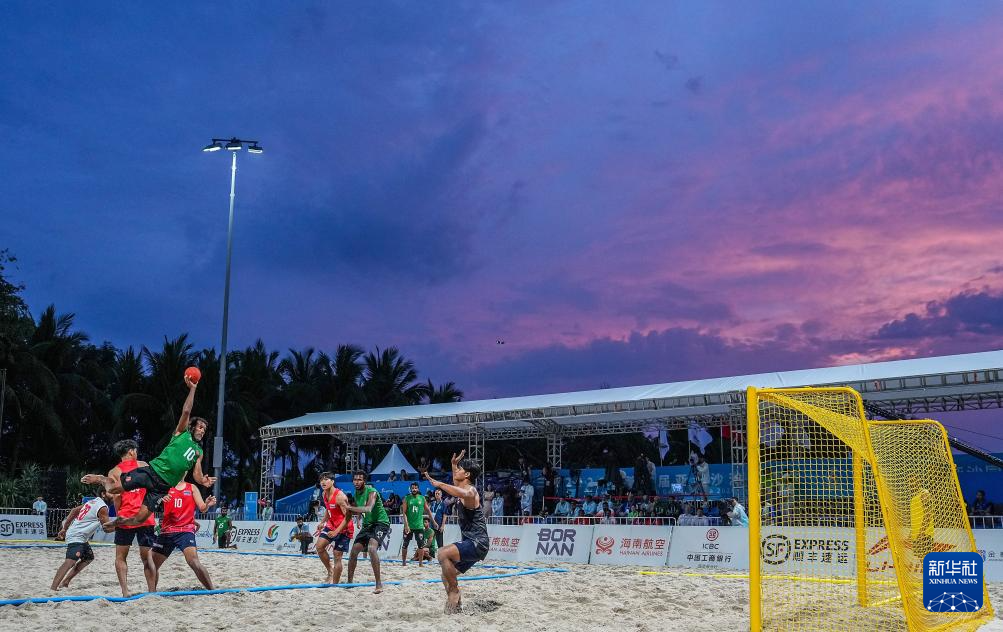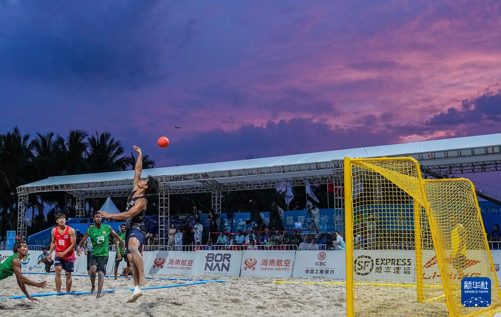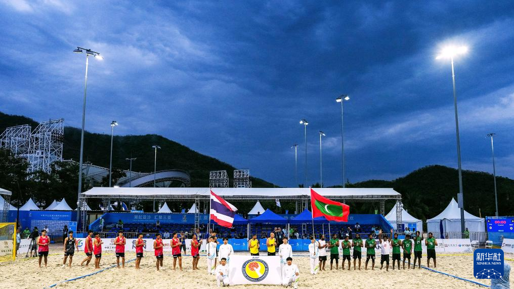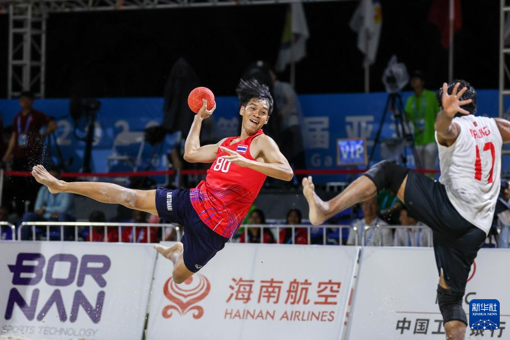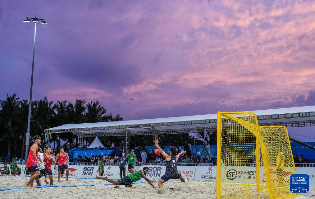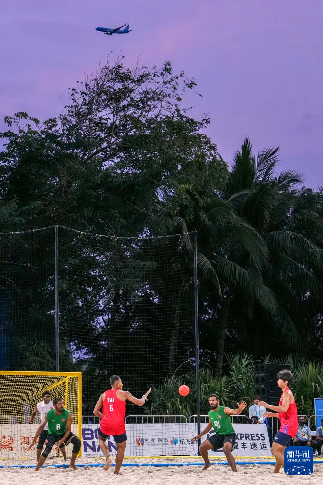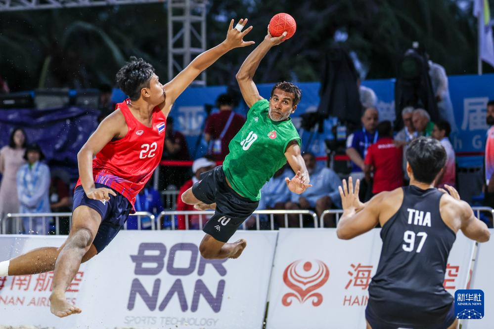 4月24日,在海南三亚举行的第六届亚洲沙滩运动会沙滩手球男子小组赛中,泰国队2比0战胜马尔代夫队。