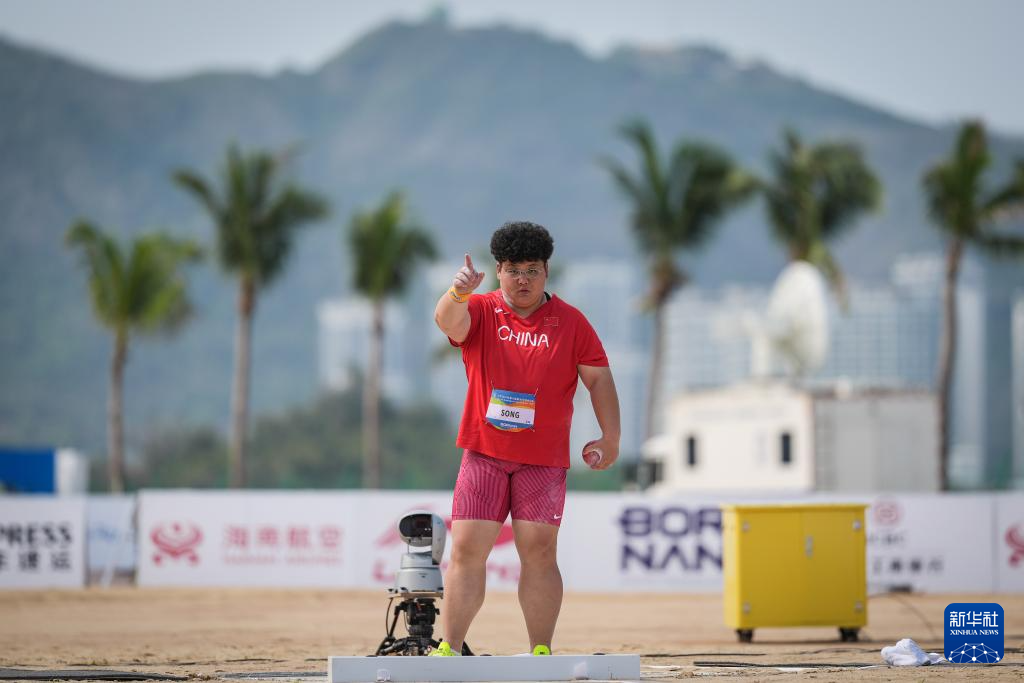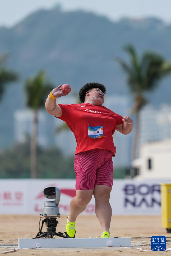 4月25日,在海南三亚举行的第六届亚洲沙滩运动会沙滩田径女子铅球决赛中,中国选手宋佳媛获得冠军,中国选手张林茹获得亚军,中国台北选手吴慈恩获得季军。