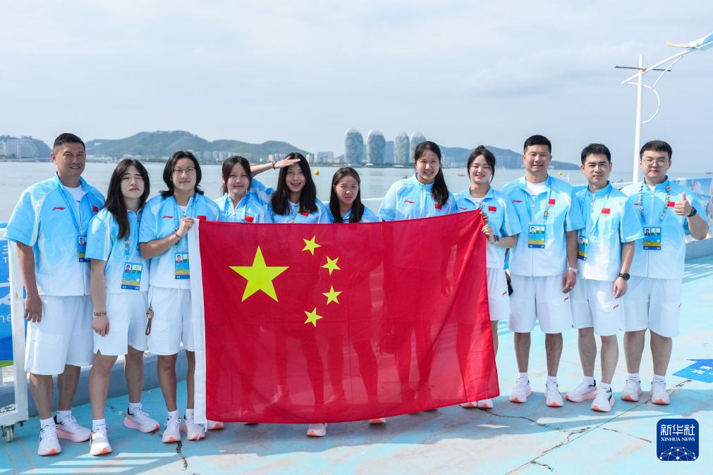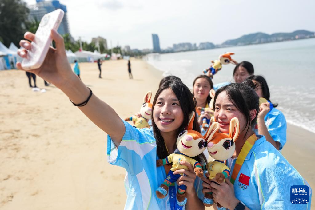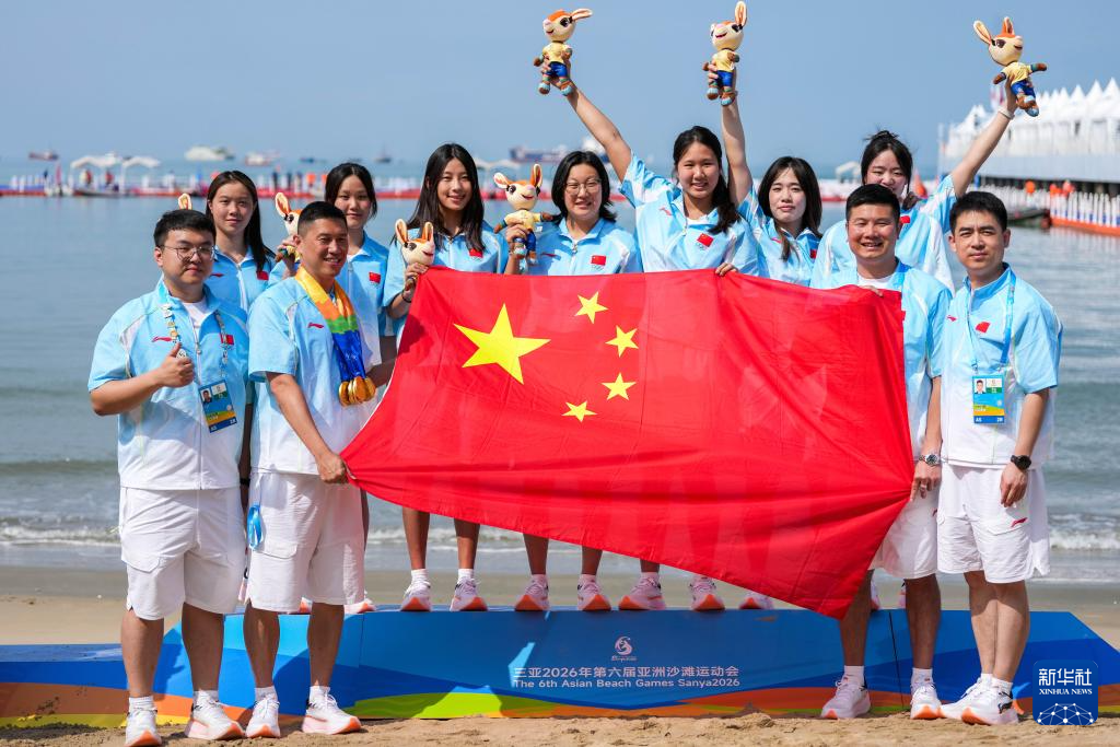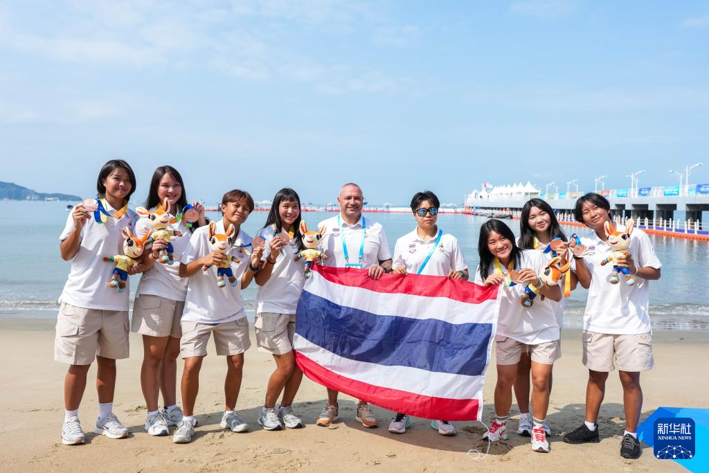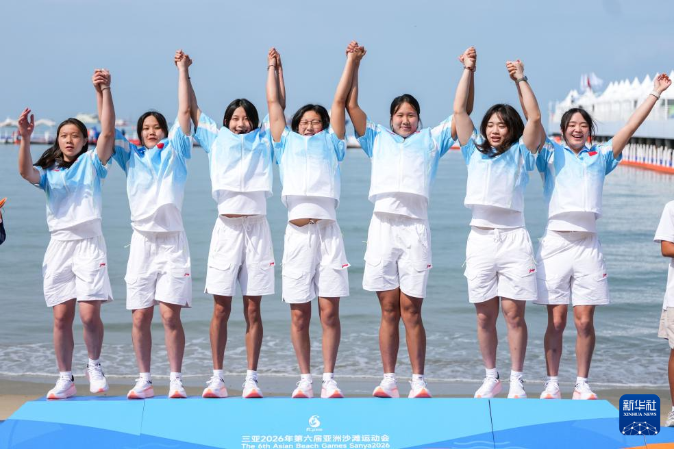 4月25日,第六届亚洲沙滩运动会女子水球颁奖仪式在海南三亚举行。中国队、哈萨克斯坦队、泰国队分获冠、亚、季军。