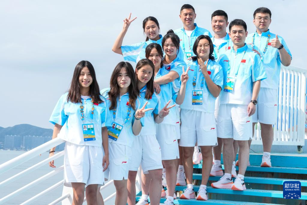 4月25日,冠军中国队成员在颁奖仪式上合影。