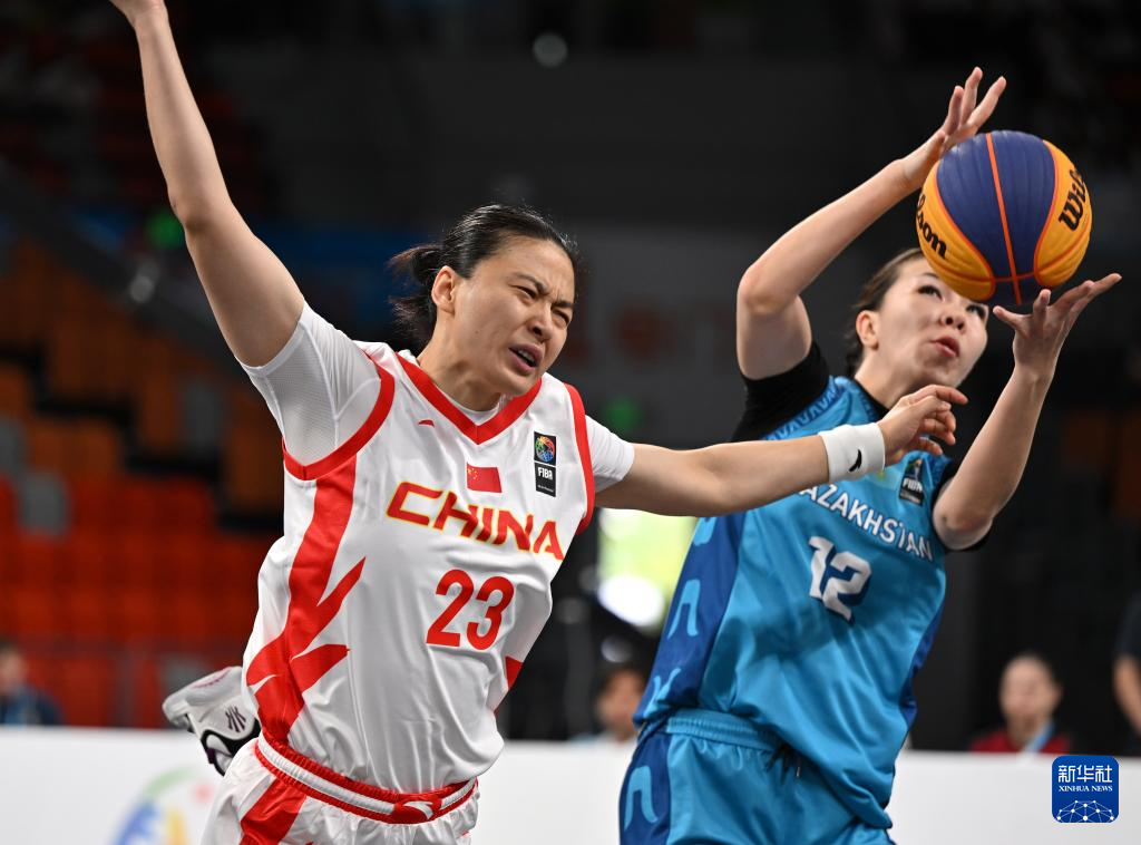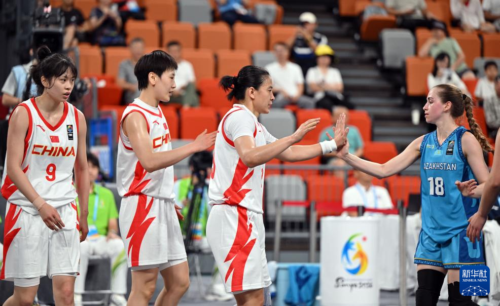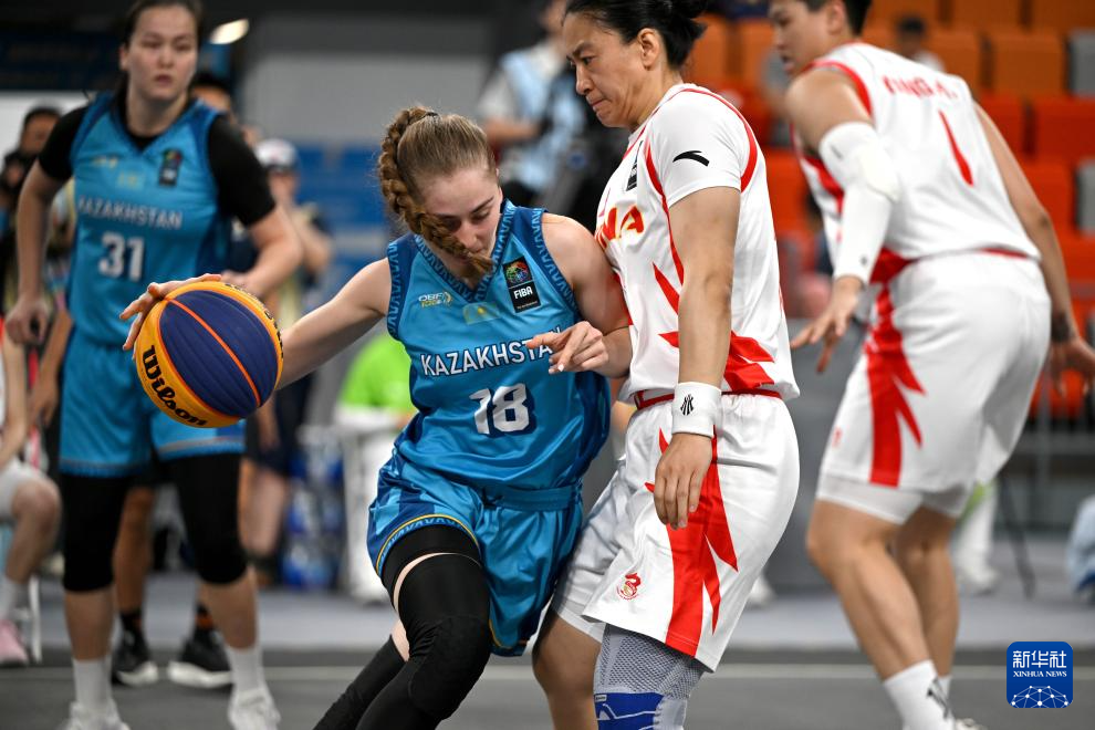 4月25日,在海南三亚举行的第六届亚洲沙滩运动会三人篮球女子小组赛,中国队22比8战胜哈萨克斯坦队。