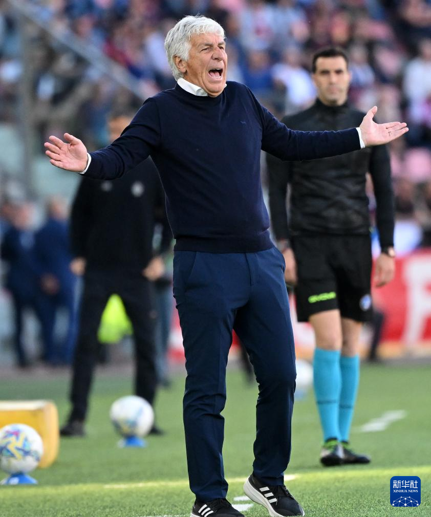 4月25日,罗马队球员主教练加斯佩里尼在场边指挥。
