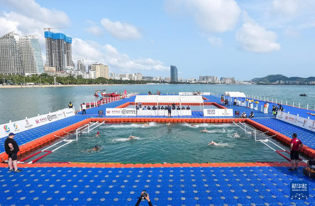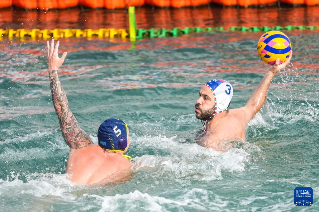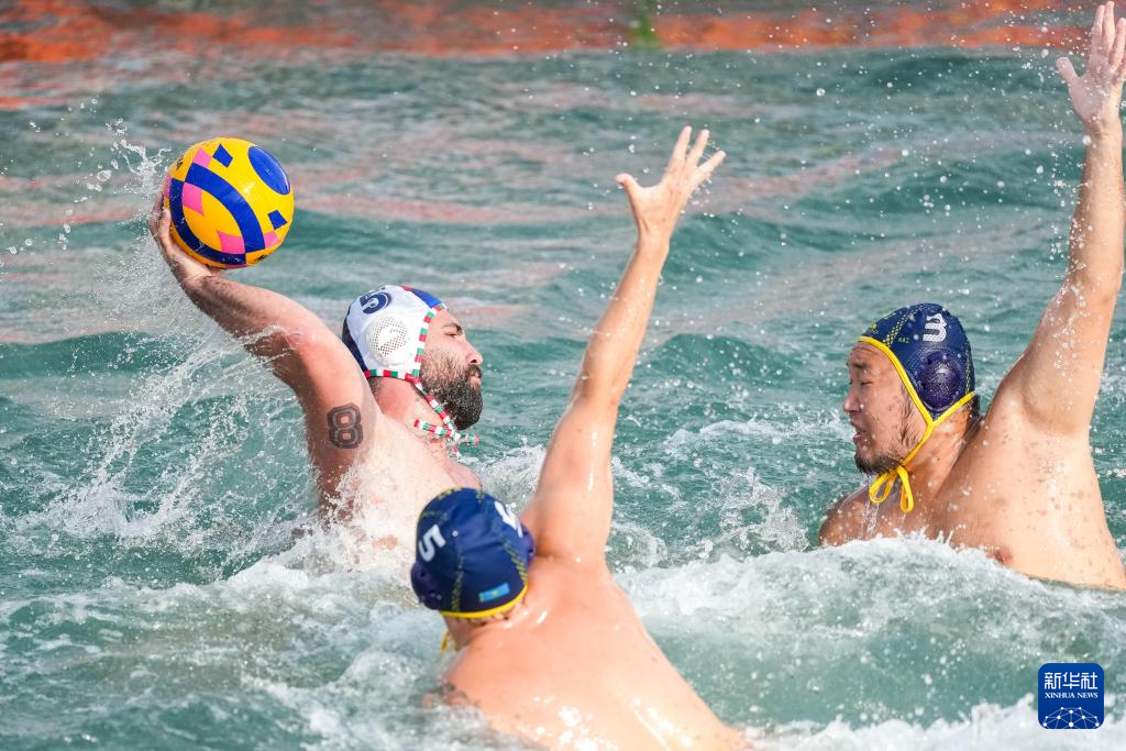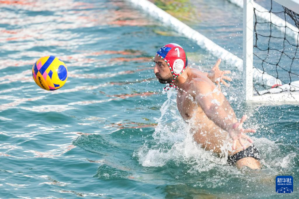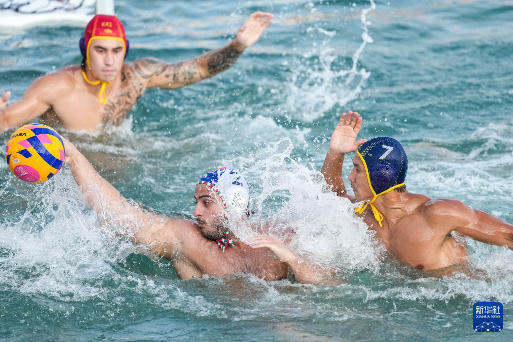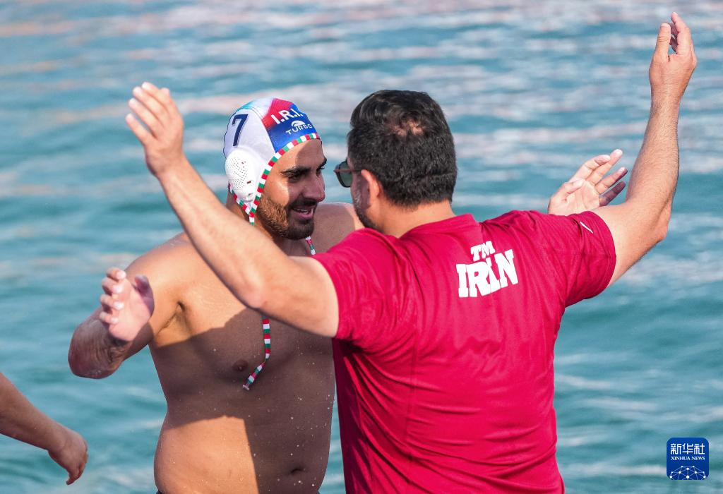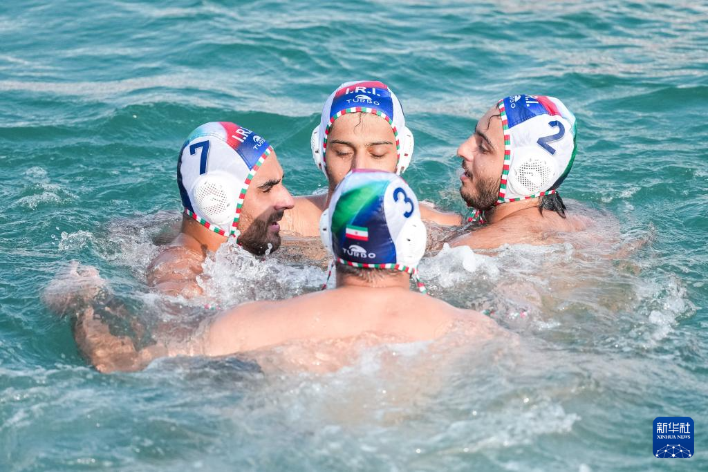 4月27日,在海南三亚举行的第六届亚洲沙滩运动会男子水球单循环决赛中, 伊朗队3比2战胜哈萨克斯坦队。
