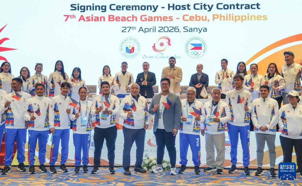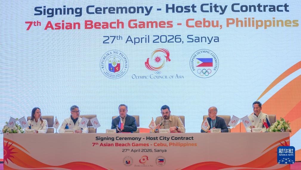 4月27日,亚奥理事会与第七届亚洲沙滩运动会举办城市菲律宾宿务的签约仪式在海南三亚举行。