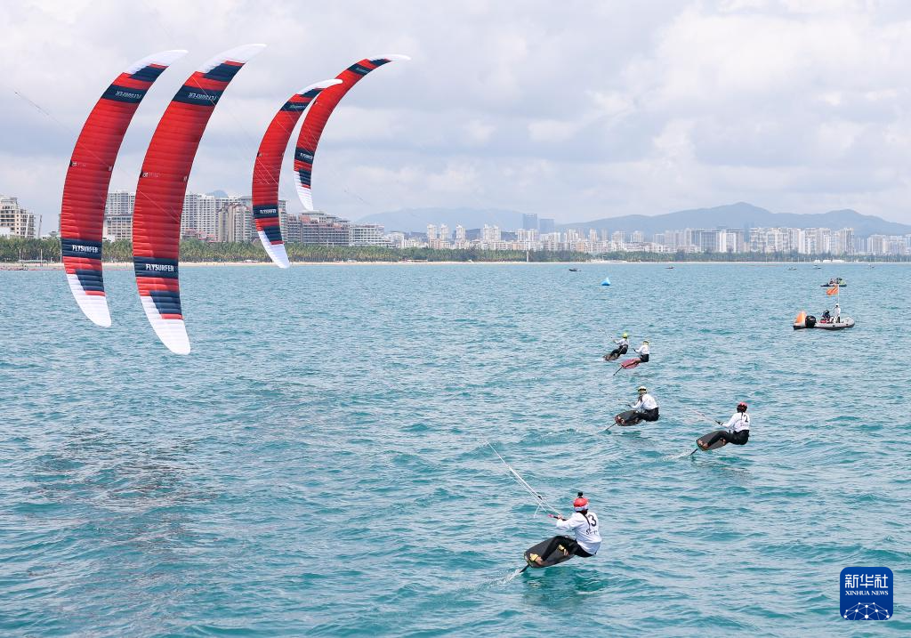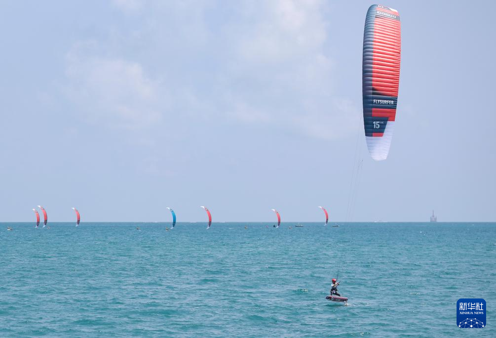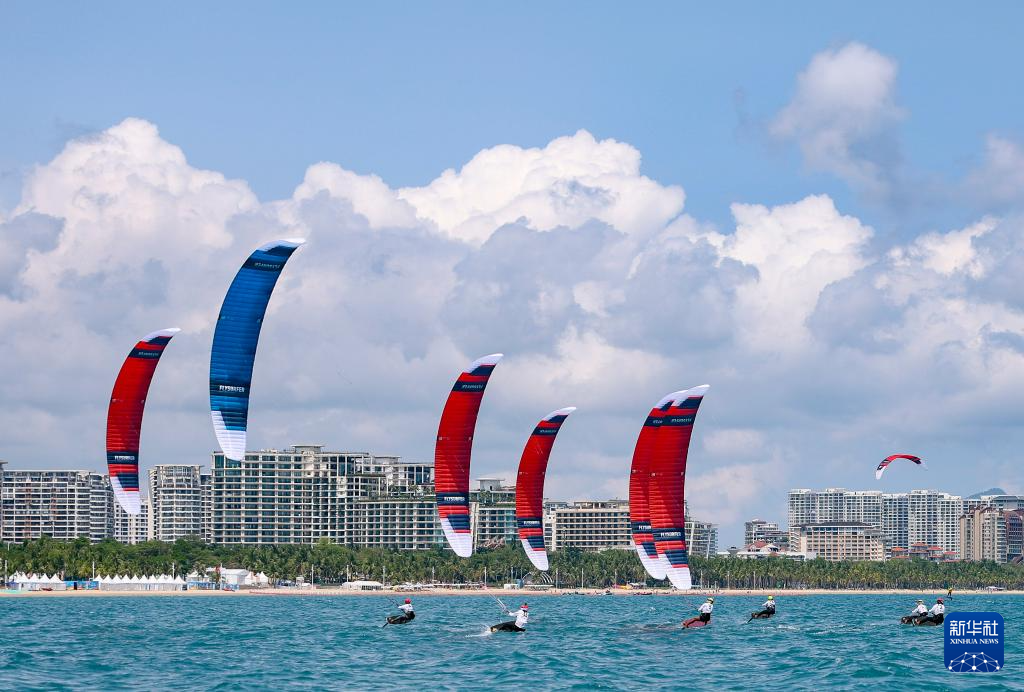 4月27日,第六届亚洲沙滩运动会帆船女子水翼风筝板公开系列赛在海南三亚举行。