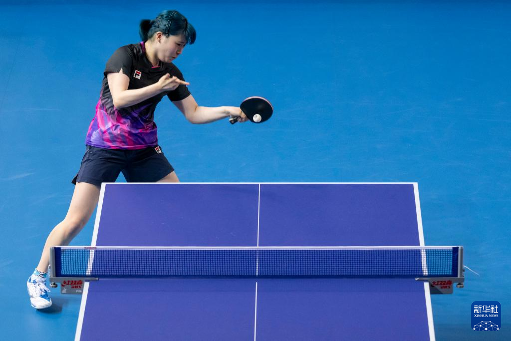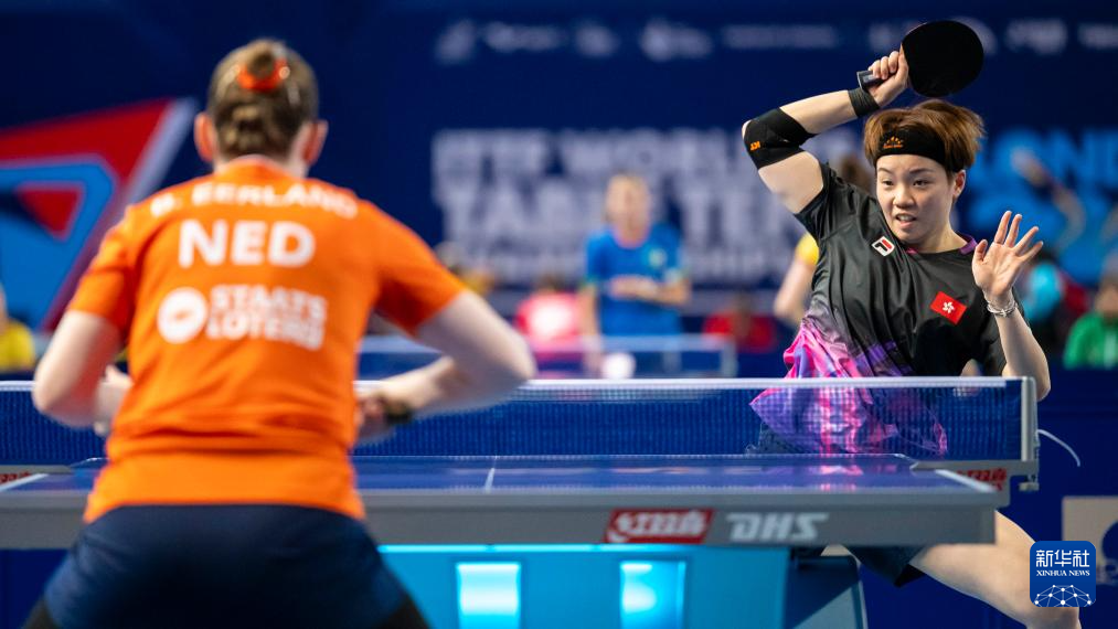 4月28日,中国香港队选手吴咏琳在比赛中回球。她3比0战胜荷兰队选手门烁涵。