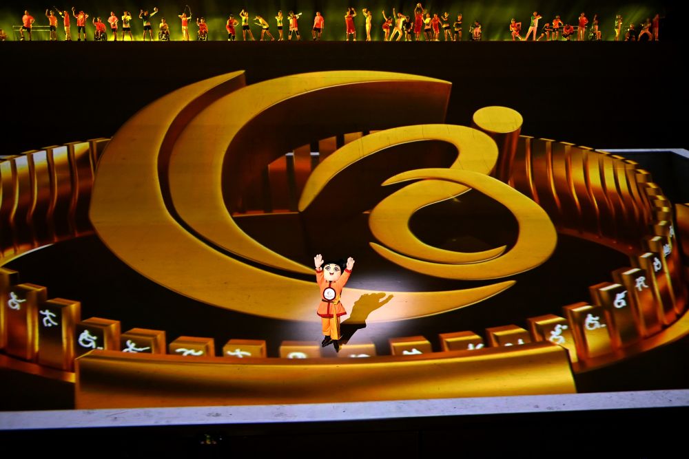10月22日,中华人民共和国第十一届残疾人运动会暨第八届特殊奥林匹克运动会吉祥物安安在开幕式上。新华社记者李一博摄