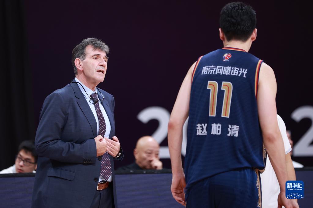 10月26日,南京同曦宙光队主教练贝西洛维奇(左)在场边指挥。