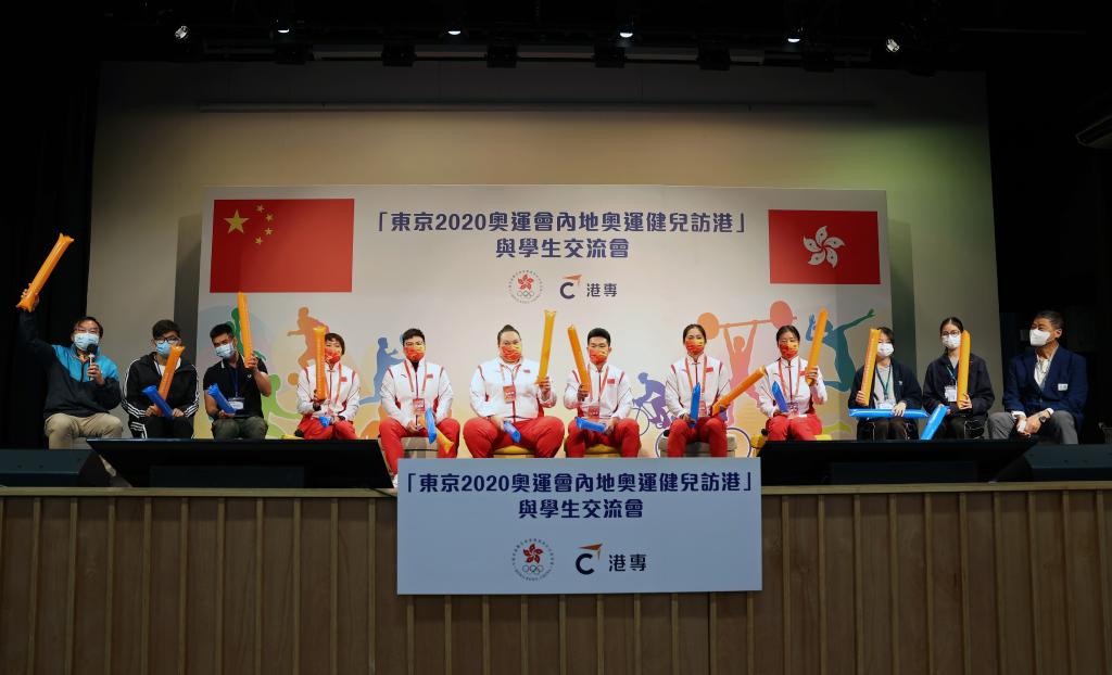 今天上午,正在访港的五名东京奥运会冠军石智勇、汪周雨、李雯雯、钟天使、孙梦雅和教练张秀云一起来到香港专业进修学校,与香港青少年交流互动,畅谈体育与人生、成功与失败、奋斗与坚持、以及为国争光的民族自豪感。