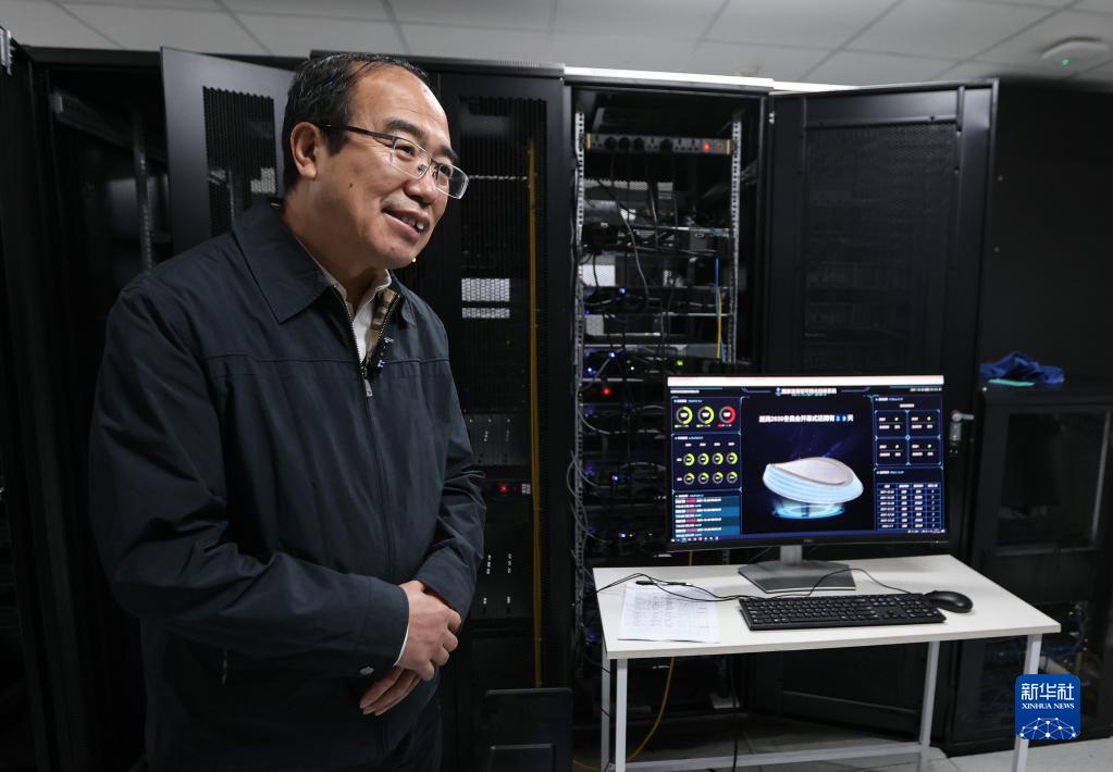 12月26日,北京国家速滑馆公司副总经理、总工程师李久林在国家速滑馆地下机房,通过电脑屏幕介绍场馆的“超级大脑”。