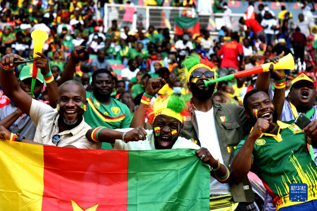 1月9日,现场球迷在揭幕战前为喀麦隆队加油。