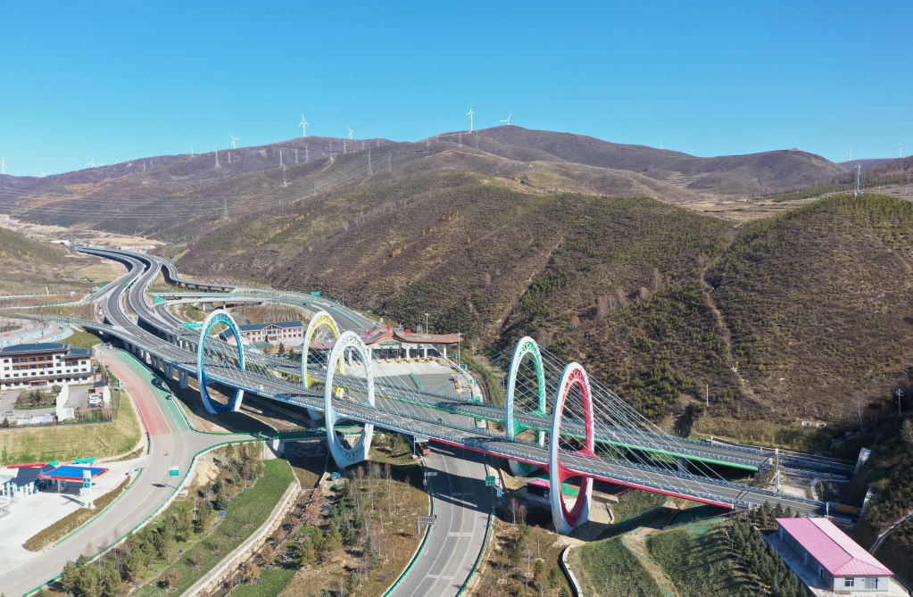 2021年10月18日,延崇高速张家口市崇礼区太子城互通式立交桥(无人机照片)。新华社记者杨世尧摄